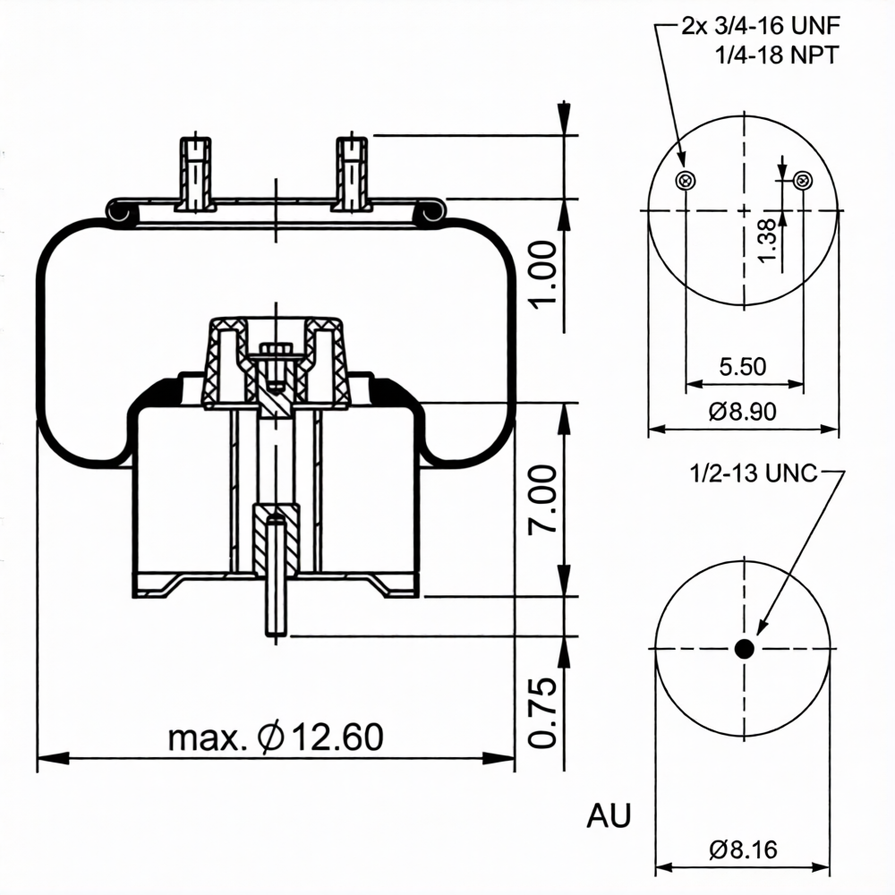 AIR BAG- AIR SPRING FOR INTERNATIONAL TRUCK BOTTOM PLATE DIA. (C) 10.04 BOTTOM PART # BS16239