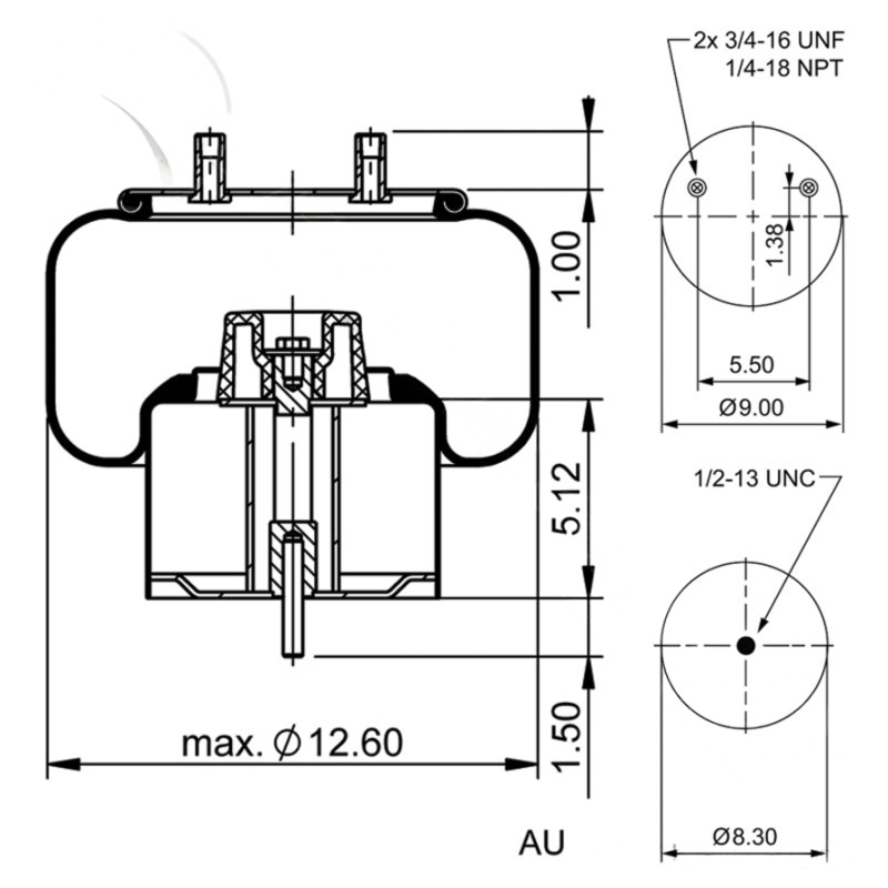 AIR BAG/ AIR SPRING, ZMD TYPE, DAMPED A/S STRL PISTON VANTRAAX 40K, 46K, 16" RIDE HEIGHT,