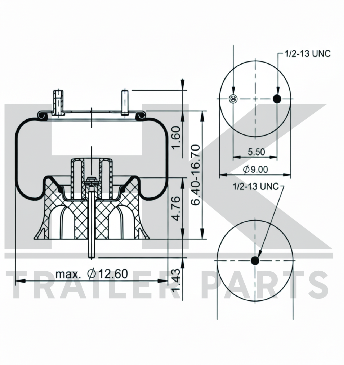 AIR BAG- AIR SPRING ROLLING LOBE PHOENIX • 4-3/4 INCH PISTON HGT. • PLASTIC BASE